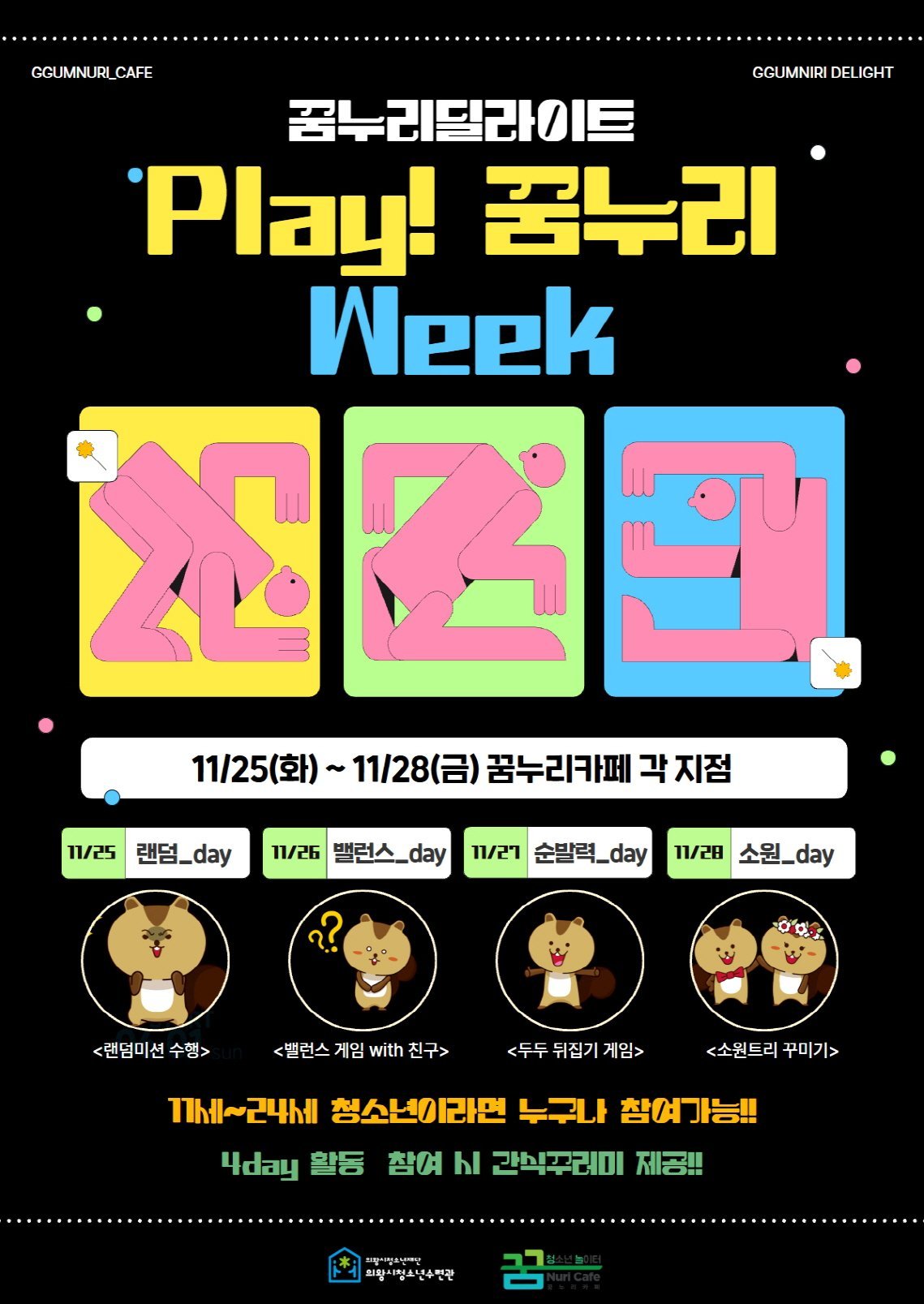 [금요저널] 의왕시청소년재단 산하 의왕시청소년수련관 꿈누리카페, △내손점, △오전점, △백운밸리점)는 오는 11월 25일부터 28일까지 4일간 꿈누리딜라이트 Play!
