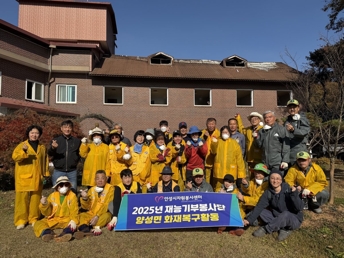 [금요저널] 안성시자원봉사센터는 2025년 11월 11일 양성면 화재 피해 현장에서 33명의 자원봉사자와 함께 화재 피해 복구 활동을 했다.