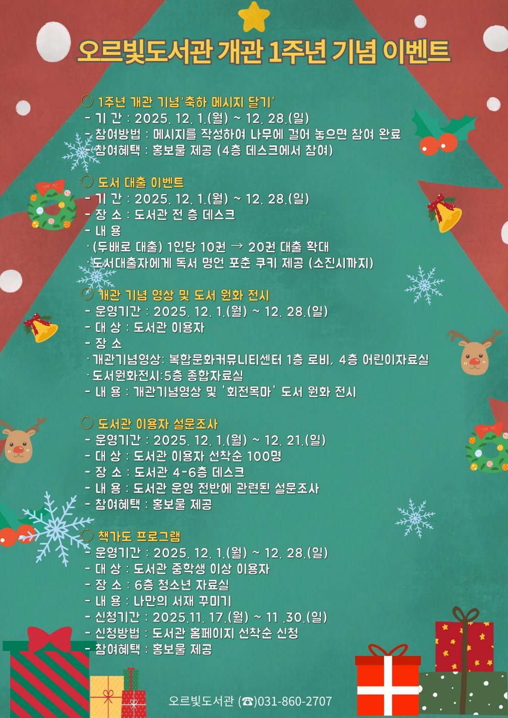 [금요저널] 동두천시 오르빛도서관이 개관 1주년을 맞아 12월 한 달간 다채로운 문화행사를 진행한다.