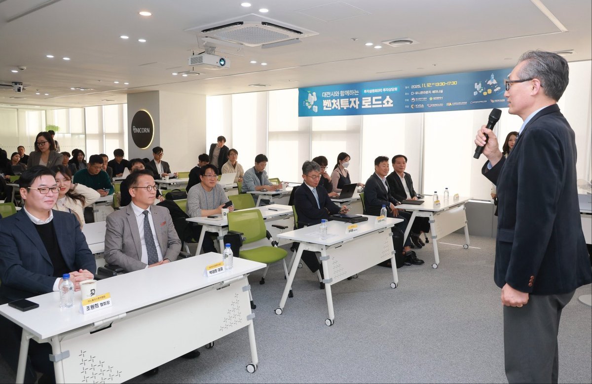 [금요저널] 대전시와 한국벤처캐피탈협회는 12일 대전의 유망기업과 수도권 투자기관을 초청해 D-유니콘라운지에서 ‘벤처투자로드쇼’를 개최했다.