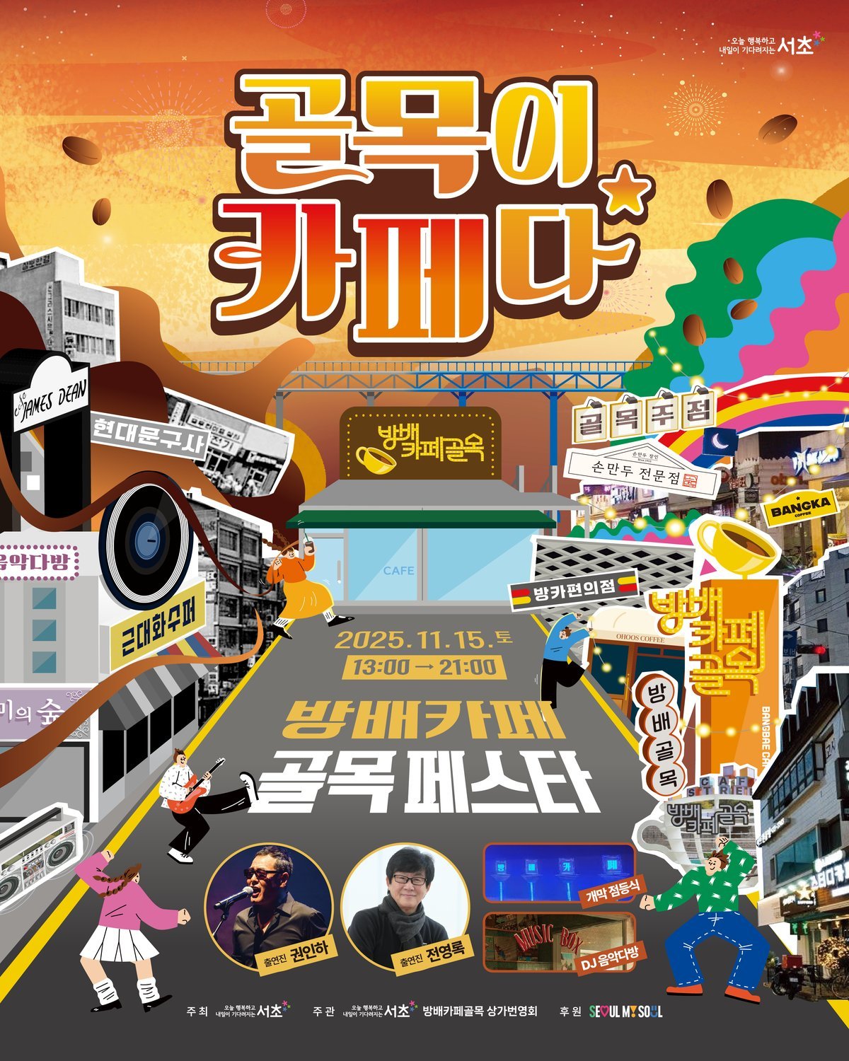[금요저널] 서울 서초구는 오는 15일 방배카페골목 일대에서 7080의 낭만과 최신 트렌드를 함께 즐길 수 있는 ‘방배카페골목 페스타’를 개최한다고 밝혔다.