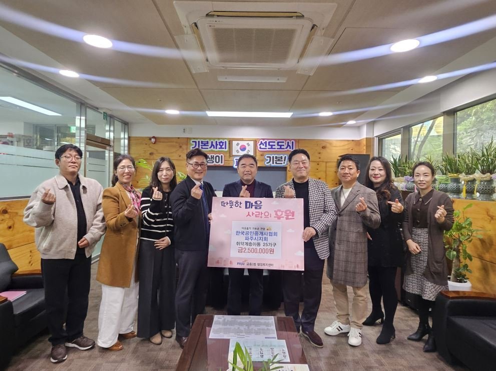 최기명 한국공인중개사협회 파주시지회장은 “지역에서 받은 사랑을 다시 지역사회에 환원하고 싶다”며 “앞으로도 꾸준히 나눔 활동에 참여하겠다”고 전했다.