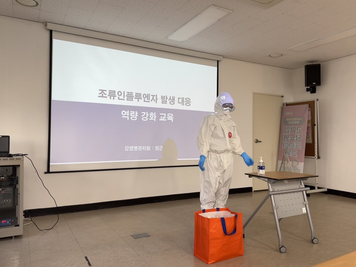 이번 훈련은 조류인플루엔자 발생 상황을 가정하여 ▲조류인플루엔자 발생 시 대응체계 ▲조류인플루엔자 인체감염 고위험군 관리조사서 작성 ▲개인보호구 착‧탈의 시연 등을 중점적으로 진행했다.