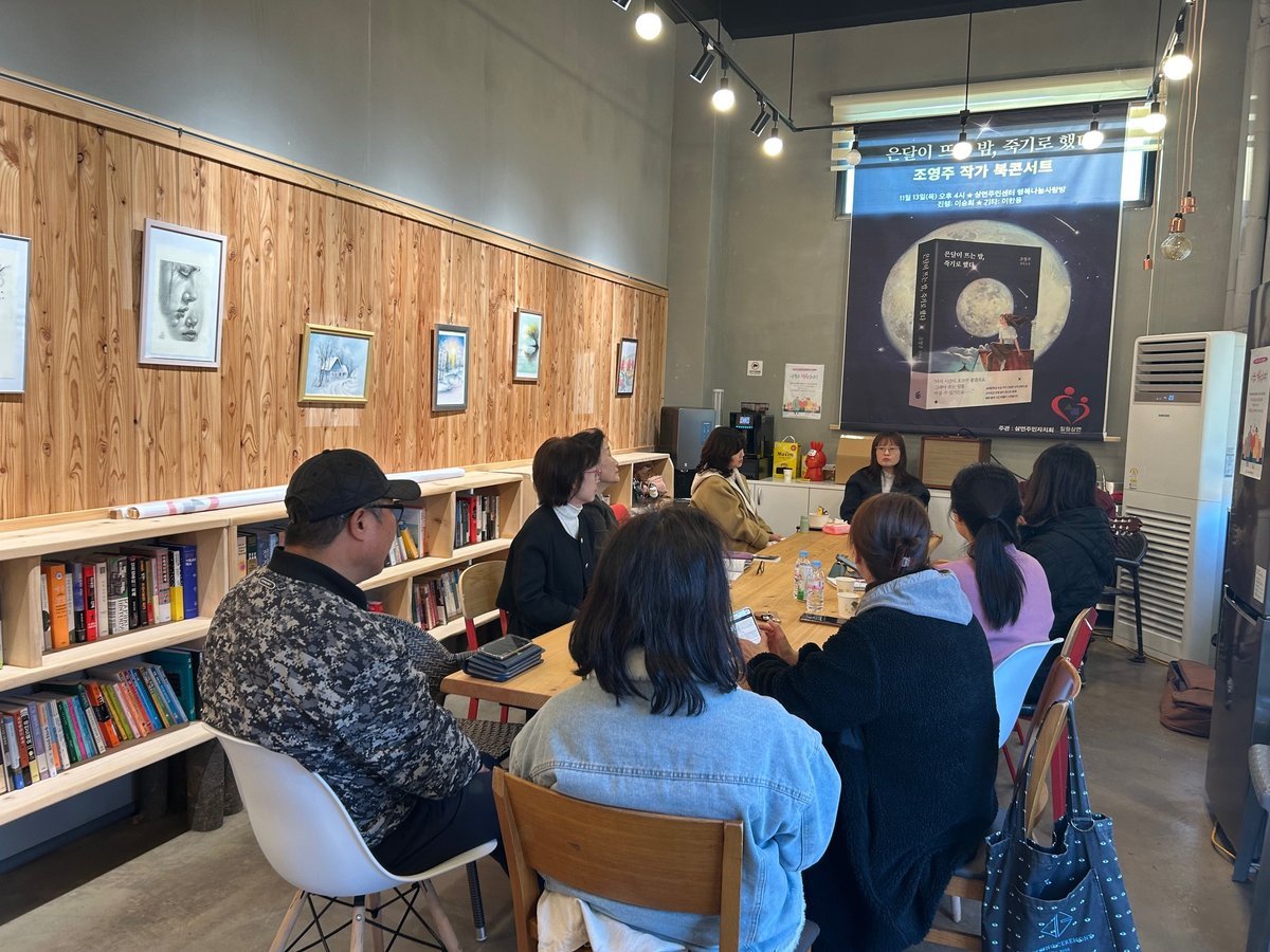 이번 행사는 세계문학상 수상 작가 조영주의 장편소설 ‘은달이 뜨는 밤, 죽기로 했다’를 주제로 진행됐으며 조 작가와 이승희 편집자, 기타리스트 이한용이 참석해 문학과 음악이 어우러진 시간을 만들었다.
