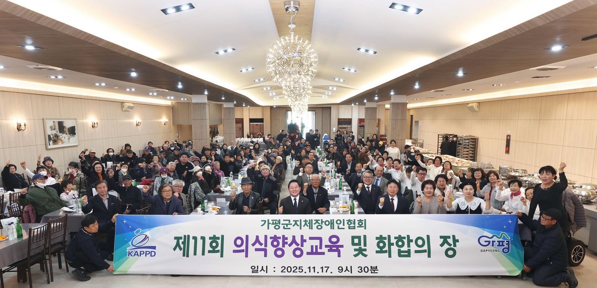 [금요저널] 가평군은 지체장애인의 권익 신장과 사회참여 확대를 위한 ‘2025년 제11회 지체장애인 의식향상교육 및 화합의 장’행사가 17일 벨리웨딩하우스에서 성황리에 열렸다고 밝혔다.