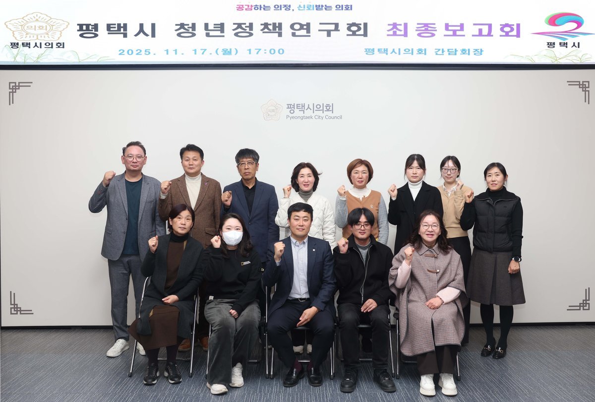 [금요저널] 평택시의회 의원 연구단체인 ‘평택시 청년정책연구회’는 17일 시의회 간담회장에서 최종보고회를 개최했다.
