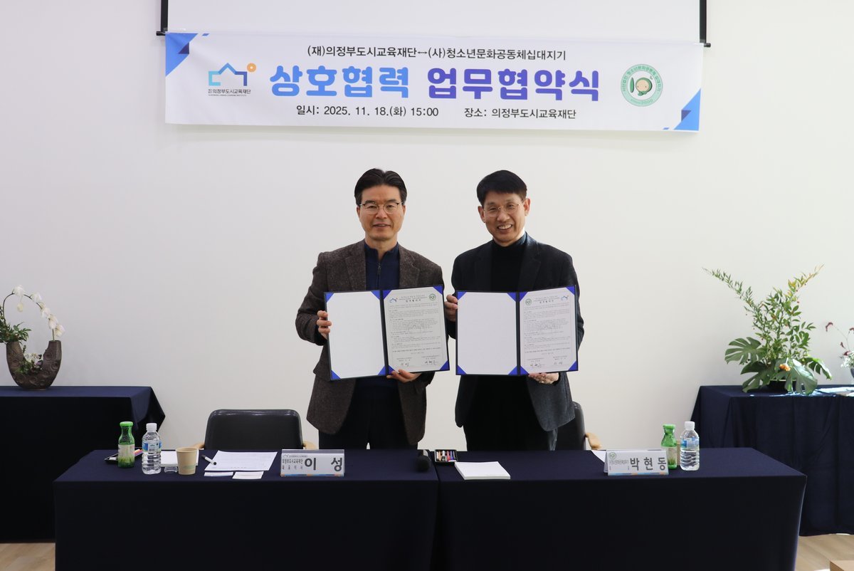 [금요저널] 의정부도시교육재단은 지난 11월 18일 사단법인 청소년문화공동체 십대지기와 위기청소년을 조기에 발굴하고 지원하기 위한 업무협약을 체결했다.