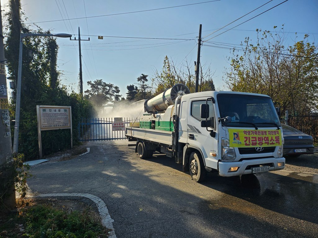 또한 시청 3대, 읍면동 12대, 축협 공동방제단 4대, 농식품부 지원 2대 등 총 21대의 방역차량을 투입해 가금농장 진출입로 및 철새도래지에 대한 상시 소독을 실시하는 등 차단방역을 강화하고 있다.