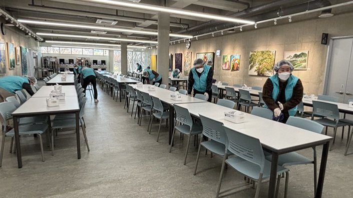 이날 통장협의회에서는 배식과 식당 정리 등 활동에 참여해 복지관을 이용하는 지역 어르신들의 점심 식사를 도왔다.