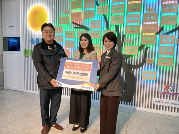 최기명 부동산협회 파주시지회장은 “매년 따뜻한 마음으로 아동·청소년을 위한 교육복지에 뜻을 함께해 주시는 파주시부동산협회 회원들과 함께 앞으로도 지속적인 나눔 활동을 확대하겠다”고 전했다.