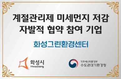화성그린환경센터 계절관리제 미세먼지 저감 자발적 협약 참여기업 현판 화성시 제공