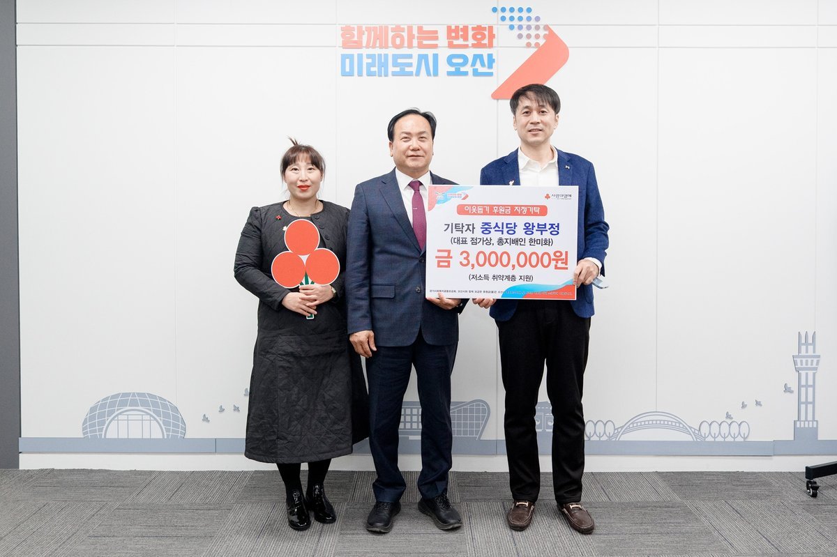 오산시 왕부정 유한회사로부터 저소득 취약계층 지원 성금 300만 원 기탁 받아 오산시 제공