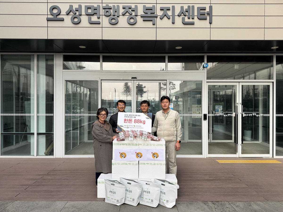 [금요저널] 평택시 오성면 행정복지센터는 지난 20일 대한한돈협회 평택지부로부터 200만원 상당의 한돈 삼겹살을 기부받아 취약계층에 전달했다고 밝혔다.