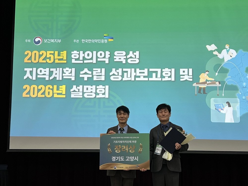[금요저널] 고양특례시가 ‘2025년 한의약 육성지역계획 우수사례 공모전’에서 우수 지자체로 선정돼 보건복지부 장관 기관 표창을 수상했다.