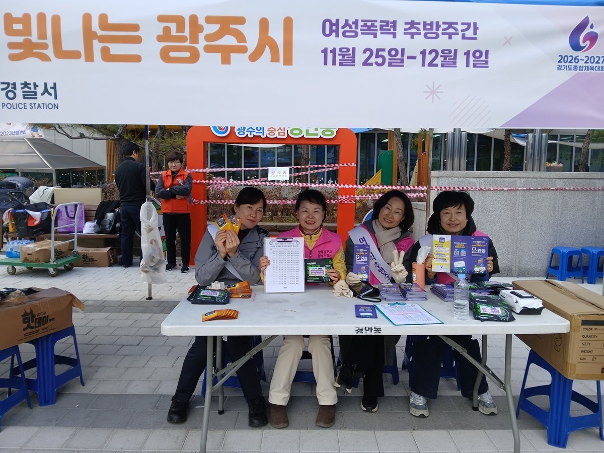 [금요저널] 광주시는 지난 21일 ‘2025년 여성 폭력 추방 주간’을 맞아 광주경찰서, 가정·성폭력상담소, 불법 촬영 시민감시단과 함께 여성 폭력 예방을 위한 민·관·경 합동 캠페인을 경안동 행정복지센터 소광장에서 실시했다.