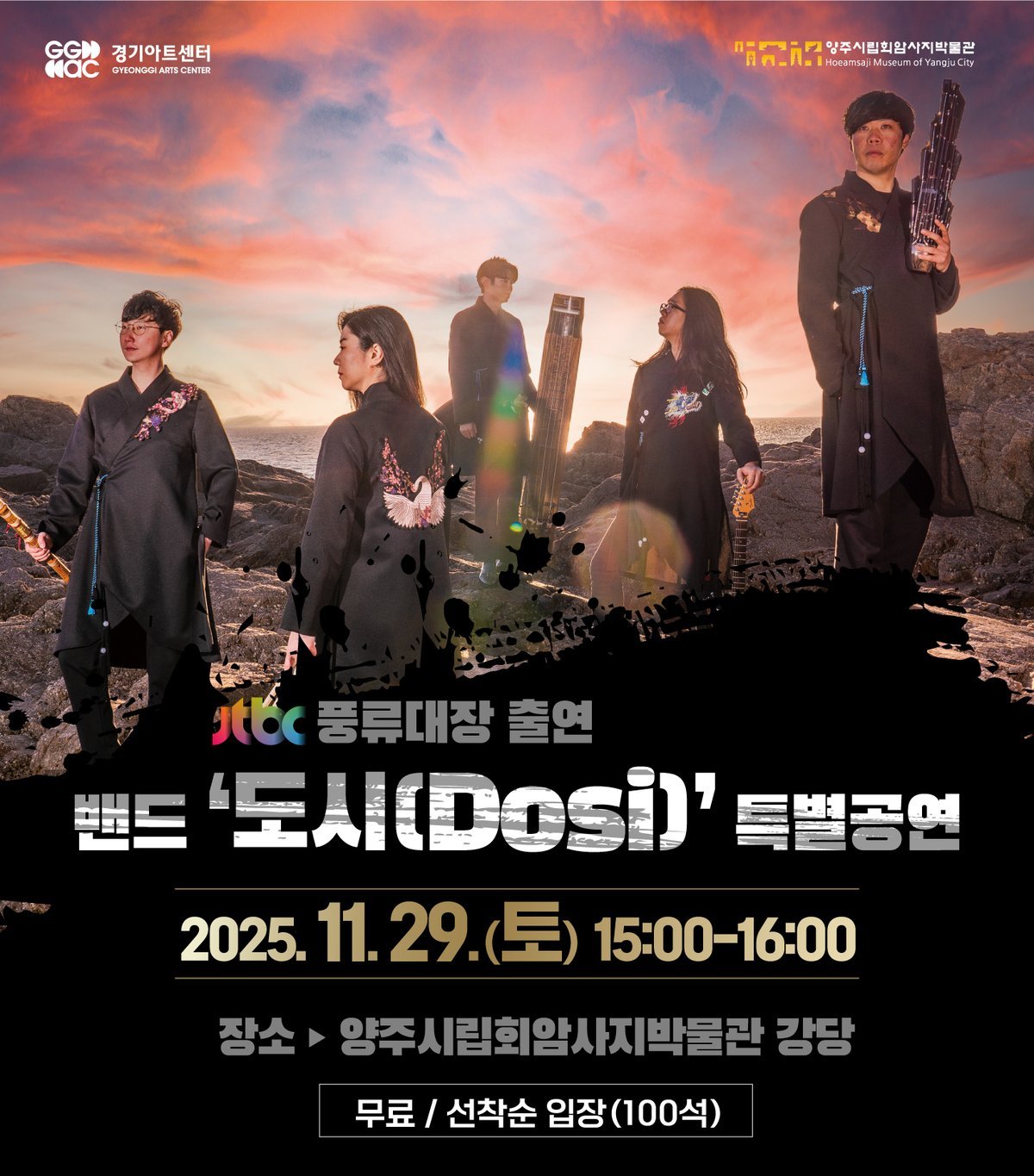 양주시가 오는 11월 29일 오후 3시에 양주시립회암사지박물관에서 크로스오버밴드 ‘도시’의 특별공연을 개최한다