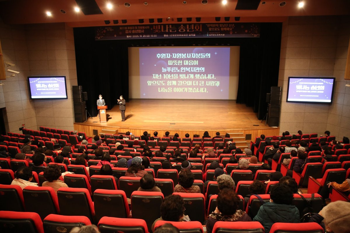 [금요저널] 군포시늘푸른노인복지관 은 지난 11월 21일 금요일, 군포문화예술회관 철쭉홀에서 제 11회 후원자 및 자원봉사자 감사송년행사 ‘빛나는 송년회 ’를 진행했다.