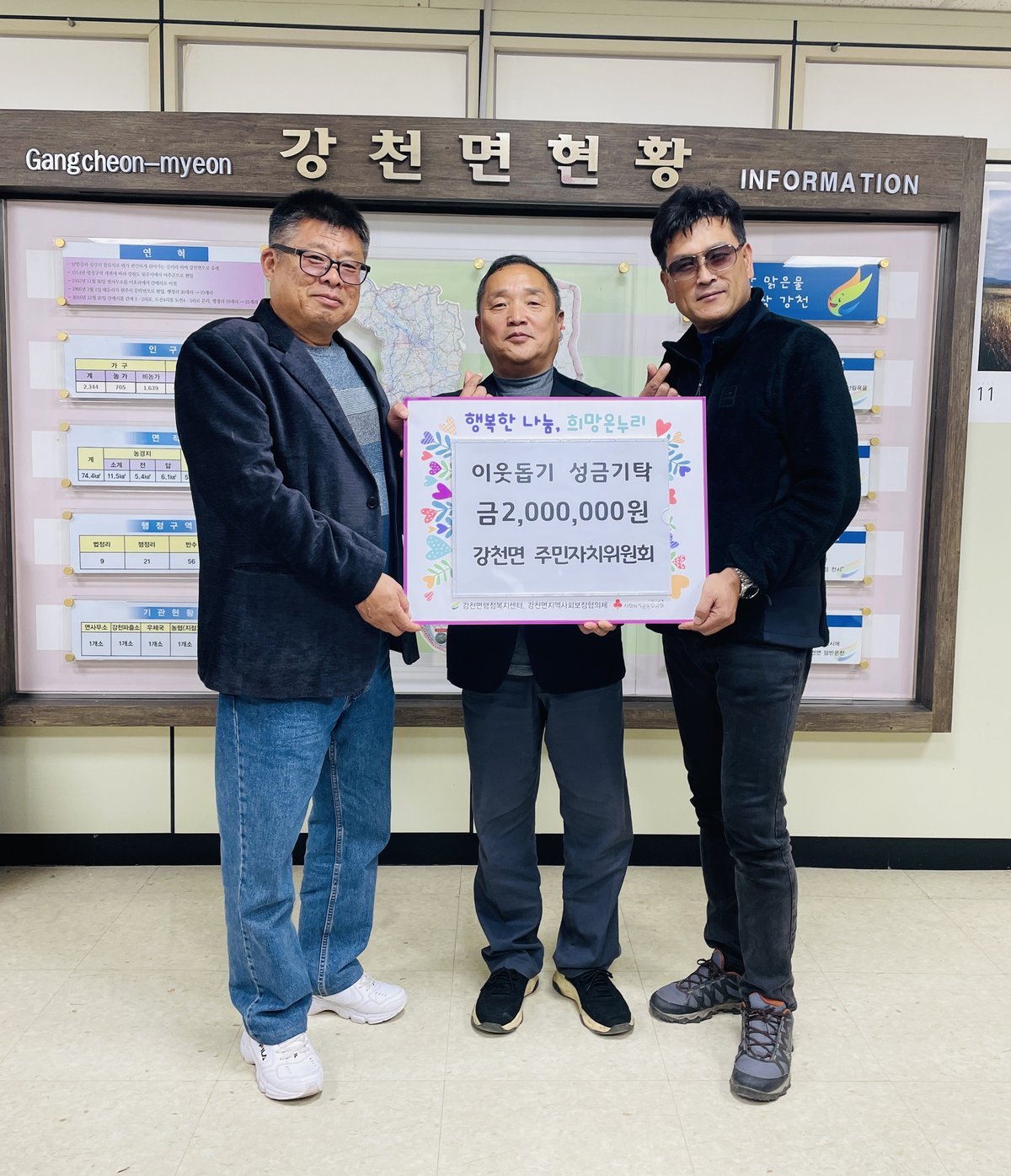 [금요저널] 강천면 주민자치위원회는 지난 24일 강천면 행정복지센터에 이웃돕기 성금 200만원을 기탁했다.