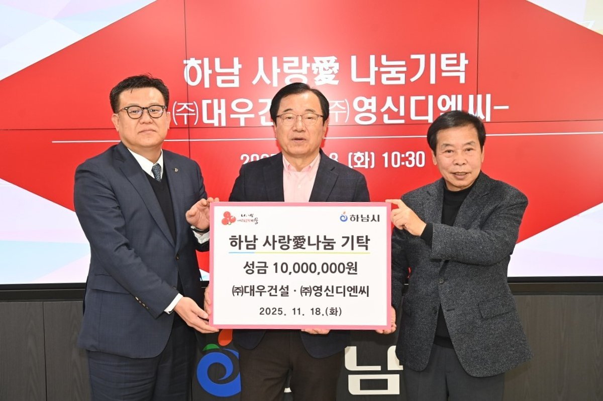 주 대우건설 주 영신디엔씨 하남시에 성금 만원 기탁 하남시 제공