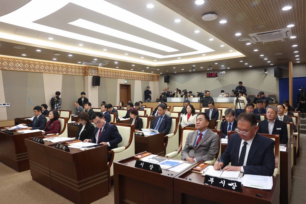 강정구 의장은 개회사를 통해 “이번 정례회에서는 2026년도 예산안 심사를 비롯한 조례안 등 중요한 안건 심의가 있어 시민 행복 증진에 실질적으로 기여할 수 있도록 세밀한 심사를 부탁드린다”고 당부했다.