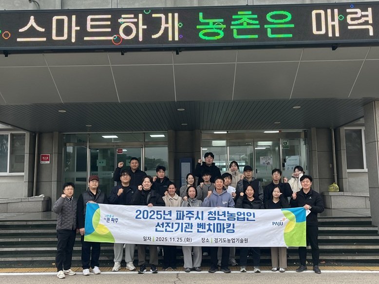[금요저널] 파주시는 지난 25일 청년농업인 27명을 대상으로 소통 활성화와 역량 강화를 위한 경기도농업기술원 견학 프로그램을 실시했다고 밝혔다.