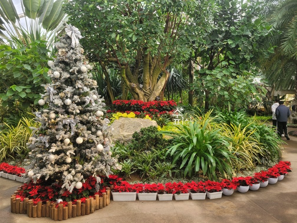 전시 공간에는 포인세티아, 시클라멘 등 겨울을 상징하는 식물들이 배치됐으며, 입구에는 트리 장식이 설치돼 관람 동선을 따라 식물을 감상할 수 있도록 구성했다.