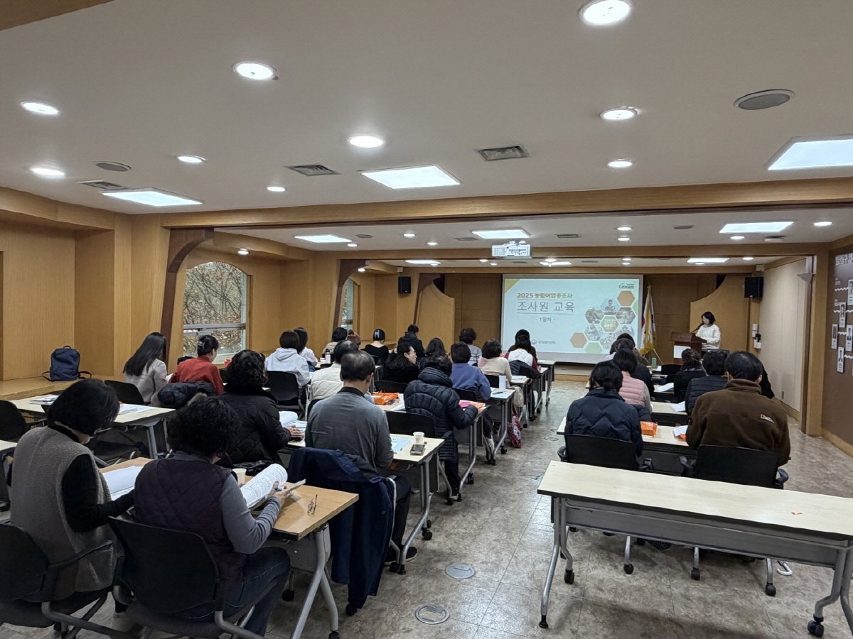 이 교육은 조사원들이 현장에서 정확하고 신뢰성 있는 조사를 수행할 수 있도록 이론과 실습을 병행해 진행됐으며, 조사원 및 관리요원 총 45명이 참석했다.
