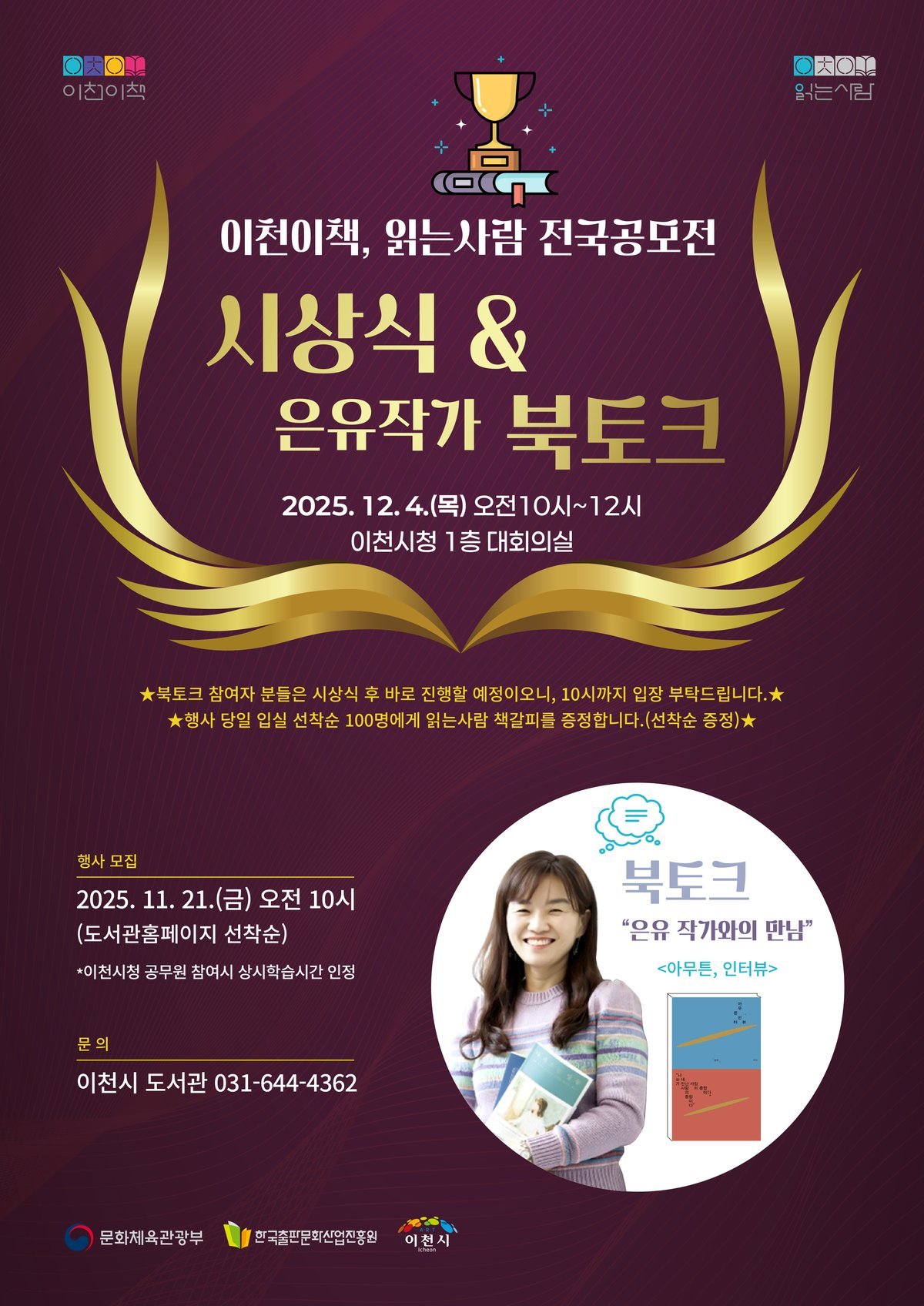 이천시, 이천이책 읽는사람 전국 공모전 시상식&은유작가 북토크 개최 (이천시 제공)