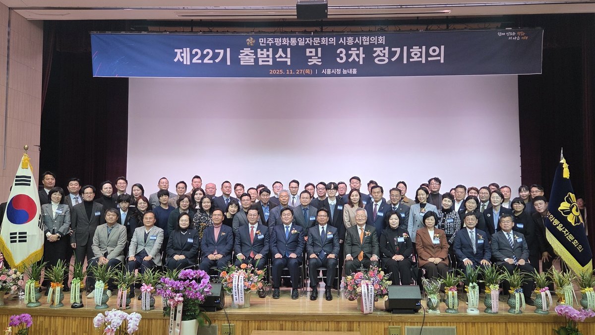 [금요저널] 민주평화통일자문회의 시흥시협의회는 지난 11월 27일 시청 늠내홀에서 ‘제22기 시흥시협의회 출범식 및 협의회장 이취임식’과 ‘2025년 정기회의’를 열고, 새로운 임기 출범을 공식 선언했다.