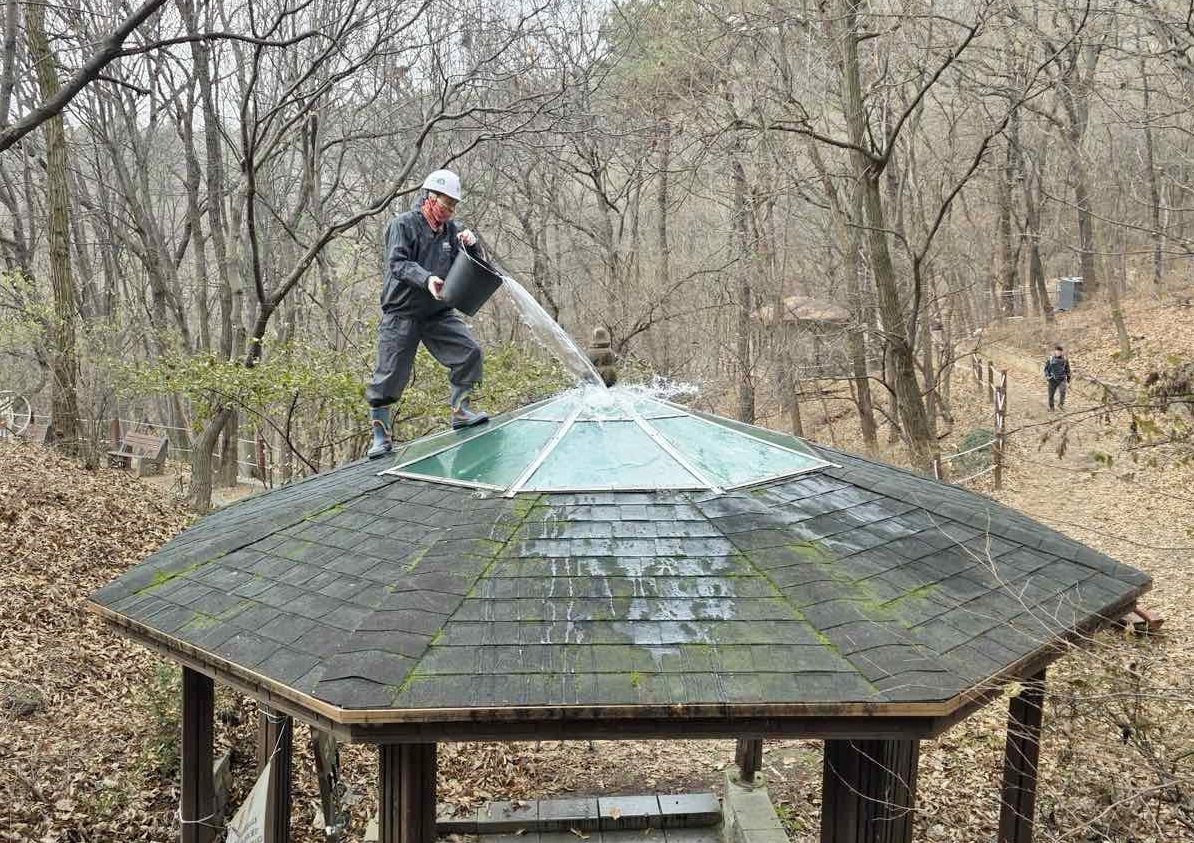 특히 비가림막 상부에 쌓인 낙엽을 제거하고, 취수구 틈 사이의 오염물과 먼지를 세척해 이용객이 보다 쾌적하게 약수터를 이용할 수 있도록 환경을 정비하는 데 중점을 뒀다.
