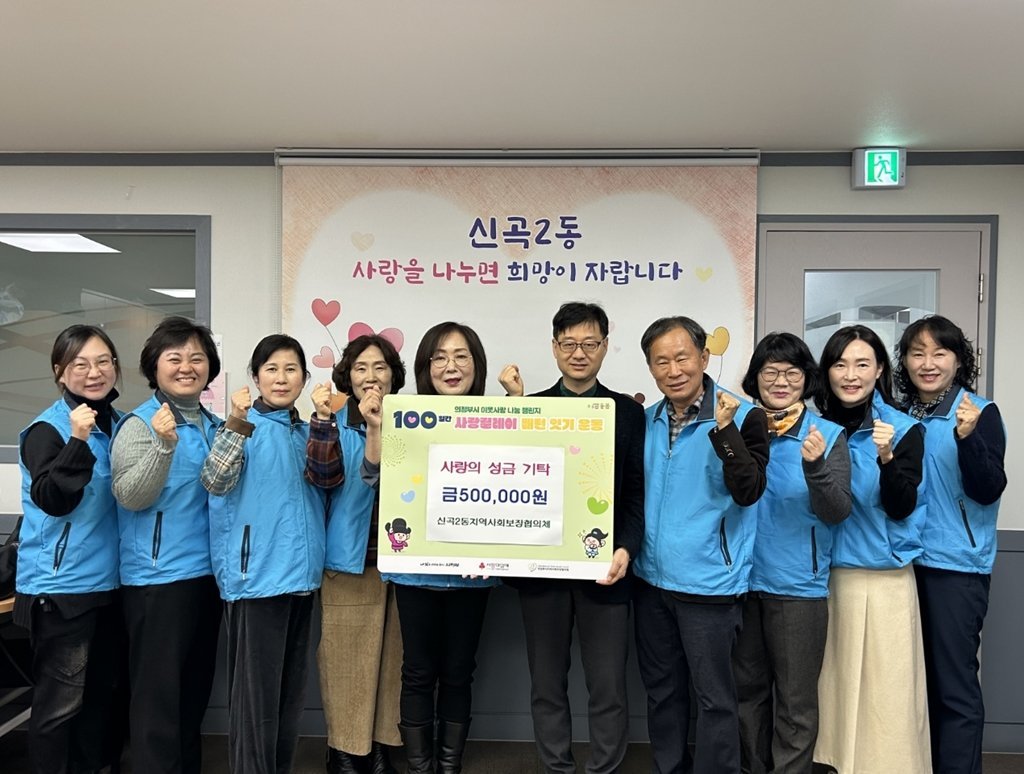 [금요저널] 의정부시 신곡2동주민센터는 11월 27일 신곡2동 지역사회보장협의체가 관내 취약계층을 위해 ‘100일간 사랑릴레이 배턴 잇기’에 성금 50만 원을 기탁했다고 밝혔다.