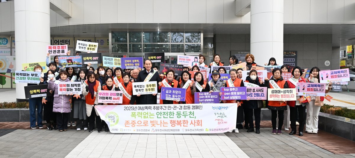 이번 캠페인은 ‘폭력 없는 안전한 동두천, 존중으로 빛나는 행복한 사회’를 슬로건으로 시민 인식 개선과 실천 확산을 위해 마련된 것으로, 동두천시·동두천경찰서·동두천시여성단체협의회·동두천시가족센터·동두천성폭력상담소 등 40여 명이 참여했다.