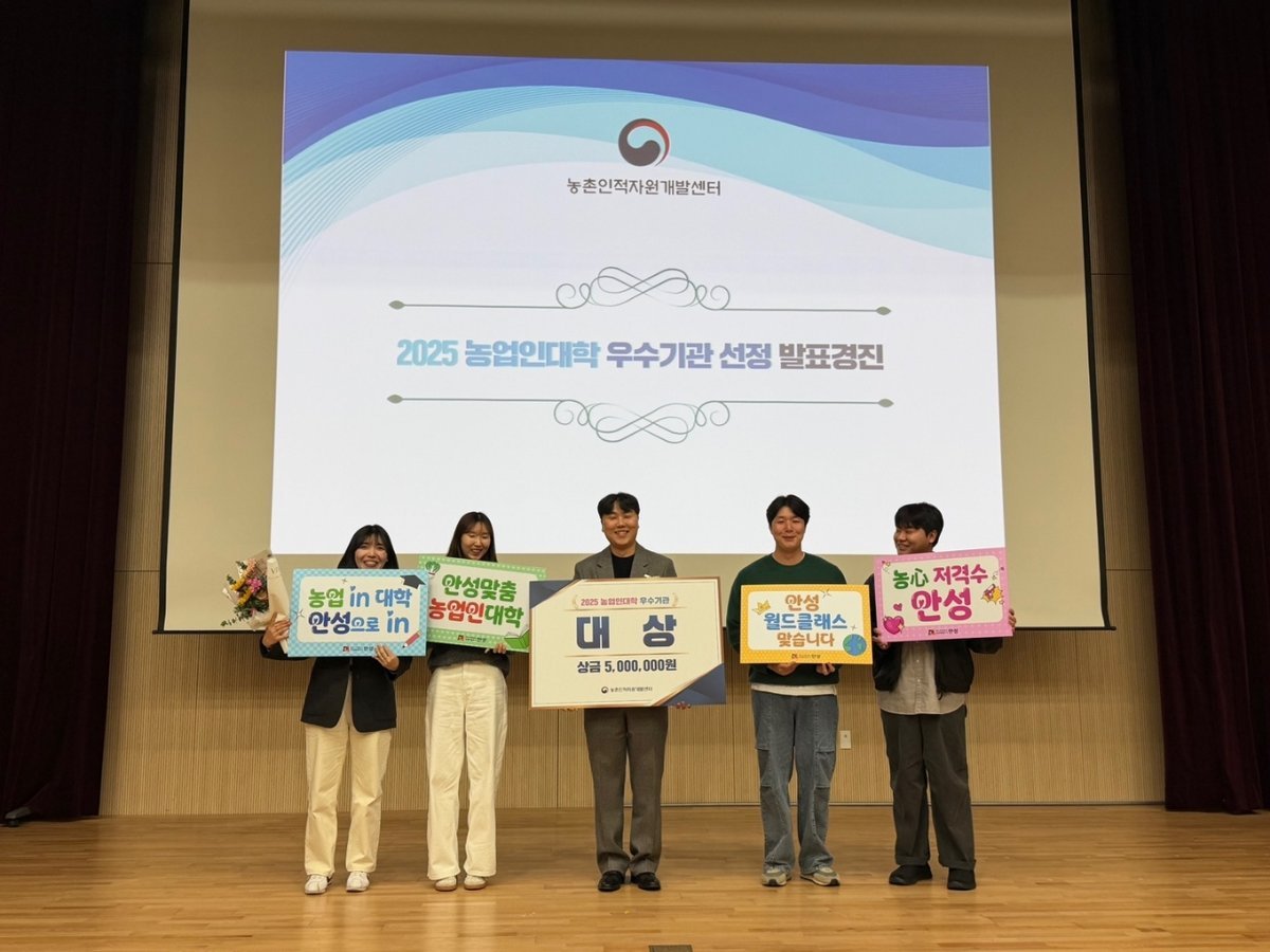 [금요저널] 안성시농업기술센터 녹색농업대학이 지난 26일 ‘2025년 농업인 대학 우수기관 평가’에서 전국 147개 농업인 대학 중 1위에 선정되며 대상을 수생했다.