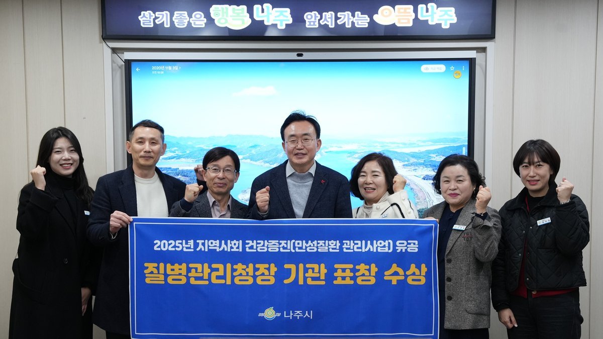 28일 나주시에 따르면 보건소 건강증진과는 2025년 호남권 만성질환 관리사업 ‘지역사회 건강증진’분야에서 우수 유공기관으로 선정돼 질병관리청장 표창을 수상했다.