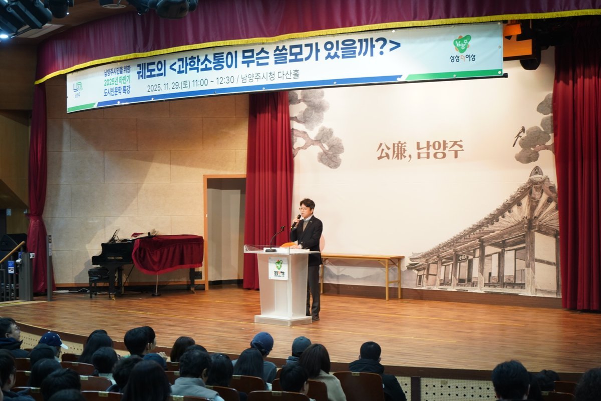 이날 강연은 2025년 도시인문학 특강의 세 번째 과정으로, 시민들이 과학을 통해 인간과 사회에 대한 이해를 넓힐 수 있도록 마련됐다.