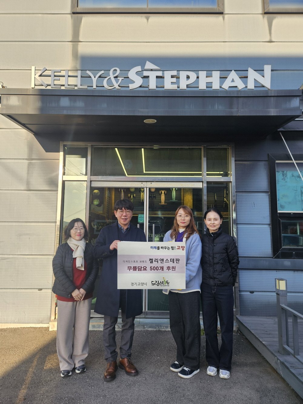 [금요저널] 고양특례시는 지난 1일 디자인스포츠 브랜드‘켈리앤스테판’에서 취약계층 아동을 위해 무릎담요 500개를 고양시 드림스타트에 후원했다고 밝혔다.