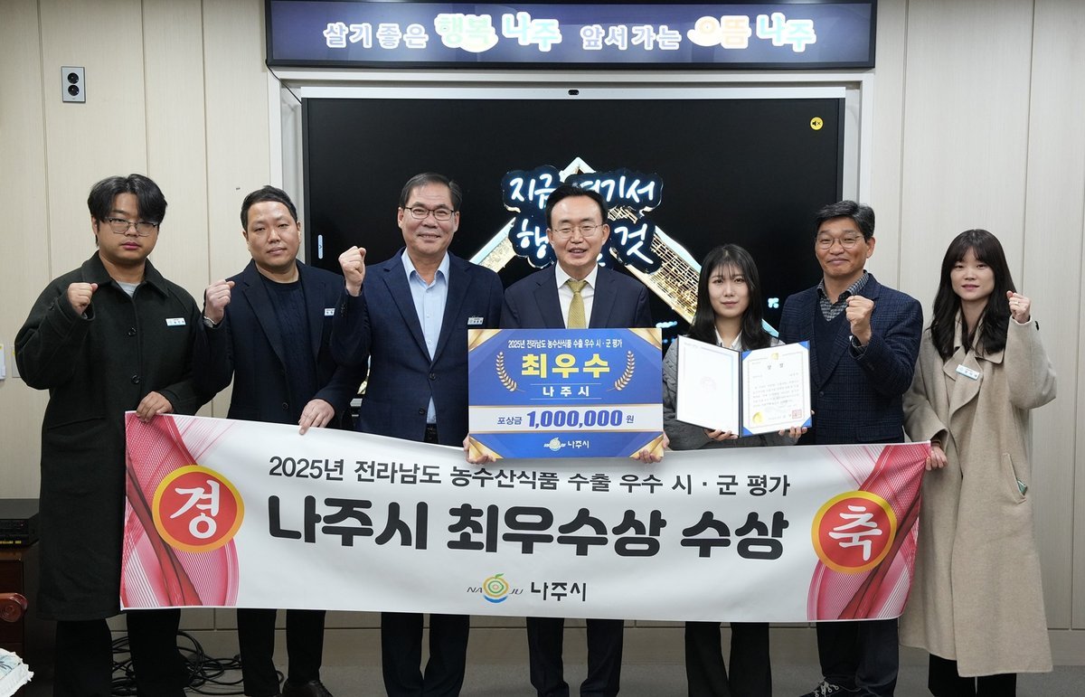 [금요저널] 전라남도 나주시는 민선 8기 출범 후 공격적인 해외시장 개척과 현지 판촉 전략을 바탕으로 전라남도 농수산식품 수출 우수 시군 평가에서 ‘최우수상’을 수상하며 3년 연속 수출 도시 위상을 굳혔다고 2일 밝혔다.