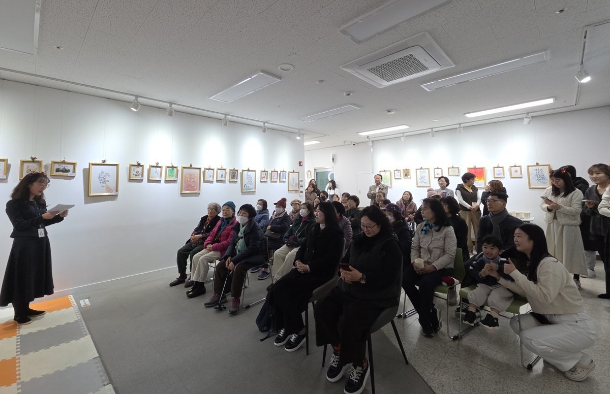 이번 전시는 연말을 맞아 지역주민에게 다양한 문화 향유 기회를 제공하고, 복지관 공간을 활용한 주민 참여 중심의 전시 문화를 조성하고자 마련됐다. 전시는 11월에 진행된 ‘마음을 나누는 한마디’ 문구 캠페인을 통해 수집된 글귀 50여 점을 비롯해, 캘리그래피 수강생 및 동아리 ‘캘리사랑’의 작품 30여 점, 인공지능 디지털 자서전 프로그램 참여자의 영상 작품 등 총 80여 점의 글과 그림, 영상 콘텐츠로 구성됐다.