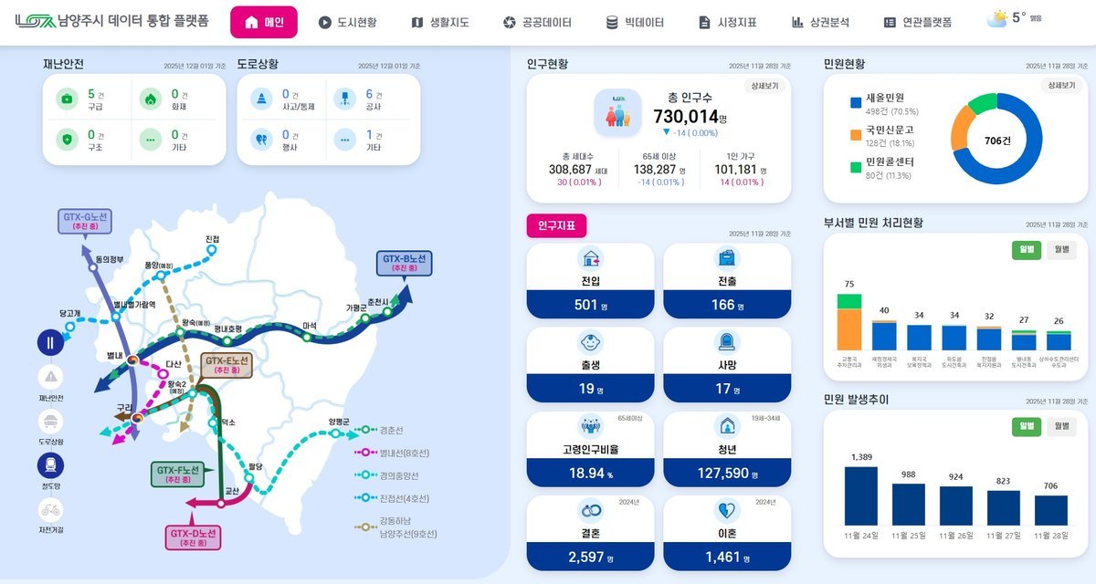 한편, 플랫폼은 남양주시 데이터 통합 플랫폼 누리집 에서 누구나 열람 가능하다.