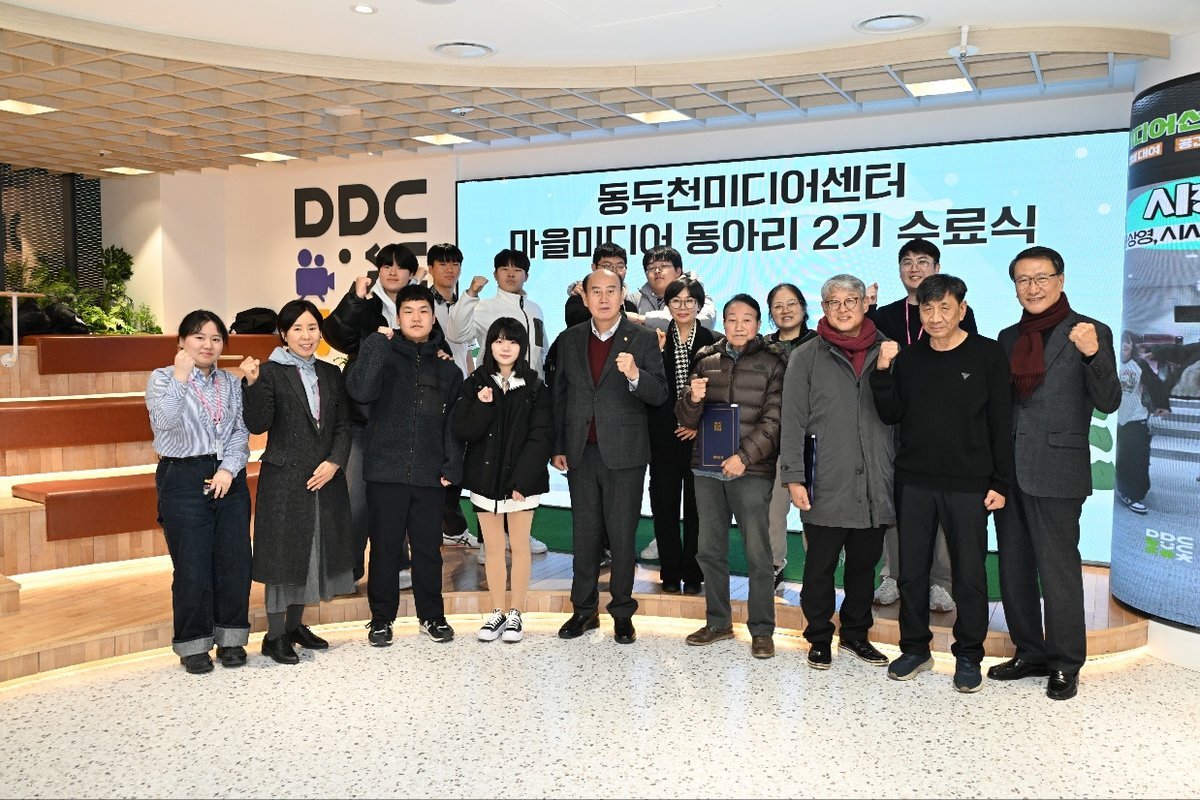 [금요저널] 동두천시는 복합문화커뮤니티센터 7층 미디어센터에서 ‘마을미디어 동아리 2기 수료식’을 열고, 두 달간 활동을 이어온 5개 동아리 16명에게 수료증을 수여했다.