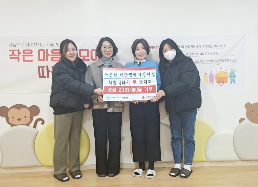 또한, 서창꿈별어린이집은 지난여름 ‘인천 아이사랑 창작동요 경연대회’에서 입상하며 받은 상금 20만 원 상당의 온누리 상품권을 추가로 기부해 나눔의 의미를 더했다.