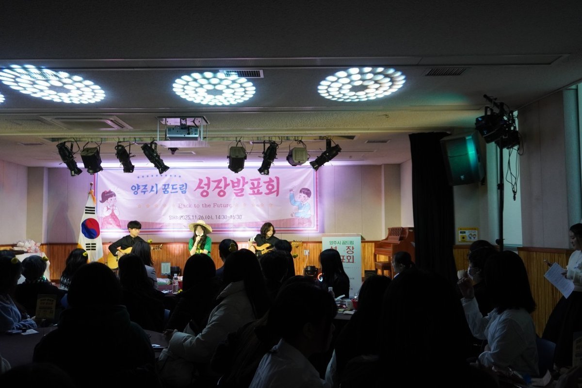 [금요저널] 양주시학교밖청소년지원센터가 최근 양주청소년문화의집에서 진행한 ‘Back to the future'성장발표회를 성황리에 마무리했다. 이번 행사는 학교 밖 청소년과 부모님, 동아리 강사, 멘토를 비롯해 꿈드림 청소년들을 위해 애써 온 지역사회 관계자들 약 120여 명이 참석했다.2025년은 「학교 밖 청소년 지원에 관한 법률」을 시행한 지 10주년이 되는 해로, 행사에서는 △센터 활동 전시 및 체험관 운영 △시장·국회의원·시의장 표창 수여 △활동 영상 상영 △꿈드림 10년 회고 △댄스·밴드 공연 등이 이어졌다. 또한 청소년들의 노력을 격려하기 위해 ‘공동성장상’과 ‘성과우수상’등으로 구성된 센터장상이 수여됐다.