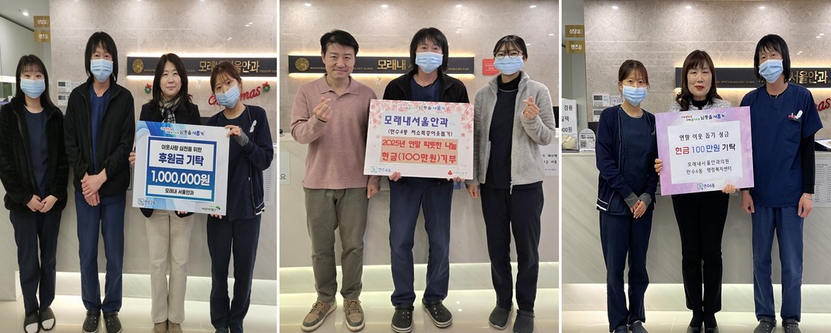 모래내서울안과는 지역에 위치한 안과 전문의원으로, 수년간 복지 소외계층 지원에 참여하며 지역사회 나눔 활동을 지속해 왔다.