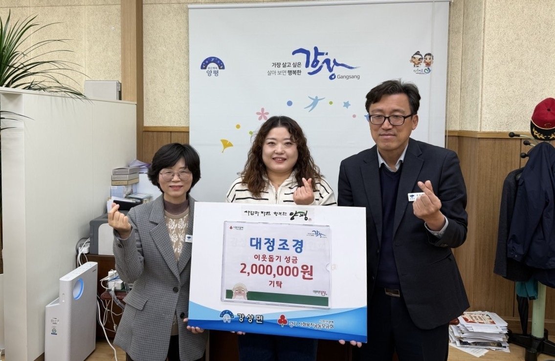 신동호 강상면장은 “매년 꾸준한 나눔을 이어오고 계신 대정조경에 깊이 감사드린다”며 “기탁해 주신 성금은 강상면의 복지 사각지대 해소와 취약계층 지원을 위해 소중히 사용하겠다”고 밝혔다.