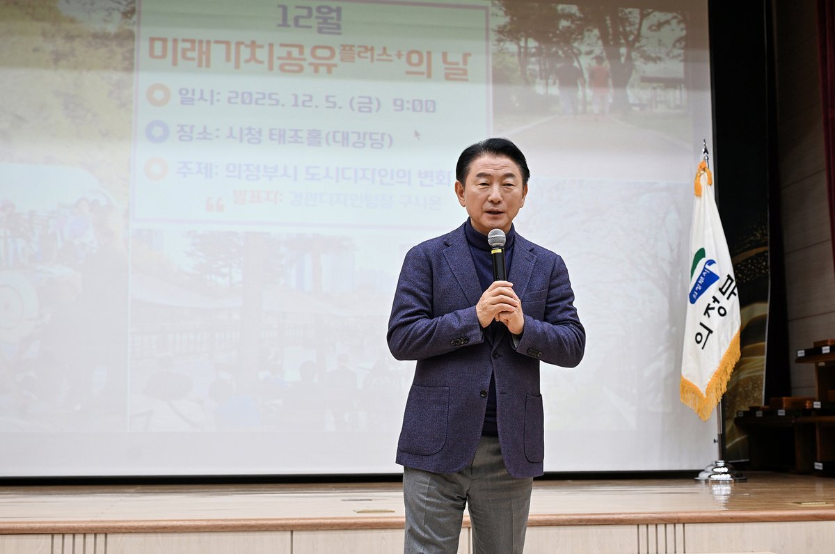 [금요저널] 의정부시는 12월 5일 시청 태조홀에서 시민과 직원 150여 명이 참석한 가운데 ‘2025년 12월 미래가치 공유플러스+의 날’을 열고 ‘디자인 도시’에 대한 비전을 공유했다.