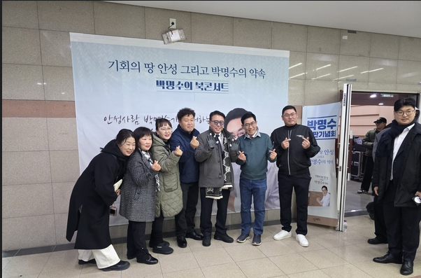 황 전 시장도 “박명수 의원은 시장으로 재직하던 시절 함께 공직을 이끌어 가며, 불의에 타협하지 않고 올곧게 시정을 이끌어 나가던 강직하고 청렴한 사람으로 기억한다”며 “비정상을 정상으로 바꿀 수 있는 박명수 의원이 안성발전을 이끌어 나가길 희망한다”고 말했다.