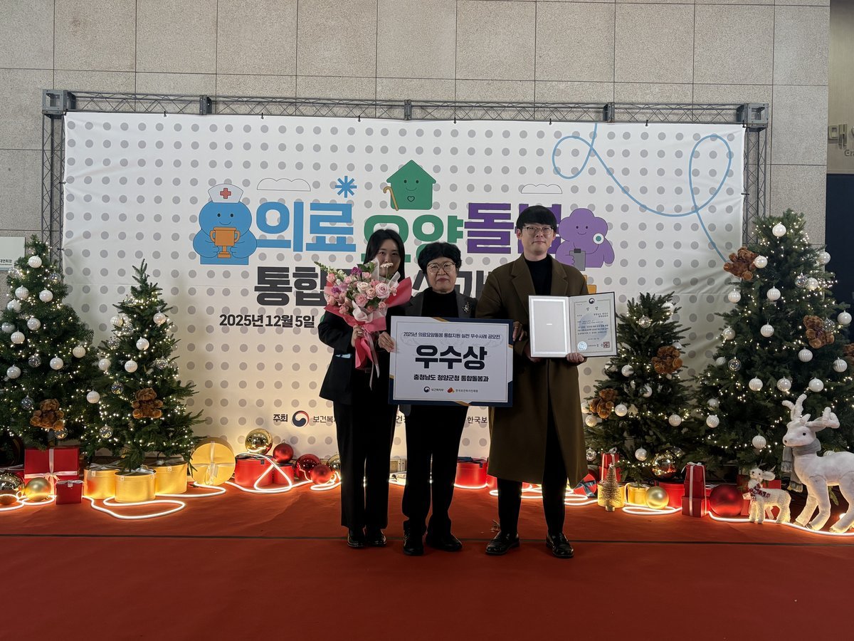 군은 지난 5일 보건복지부가 주최한 ‘2025년 의료·요양·돌봄 통합지원 성과대회’에서 의료돌봄 추진 유공 부문 보건복지부 장관 표창과 우수사례 공모전 우수상을 수상하며 2개 부문에서 성과를 거뒀다.
