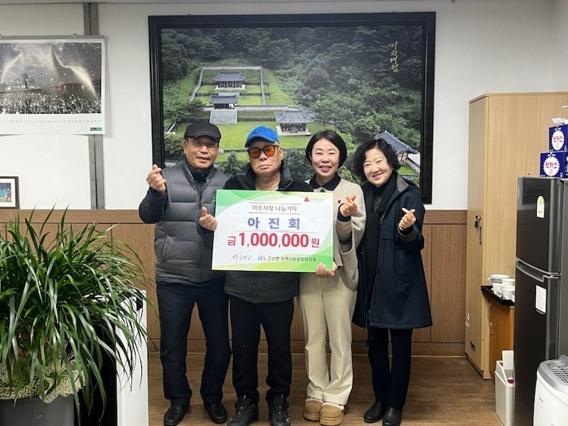 [금요저널] 금산군 진산면에서 활동하는 아름다운 진산면 만들기회는 지난 5일 희망 2026 나눔캠페인에 동참하며 성금 100만 원을 진산면행정복지센터에 기탁했다.