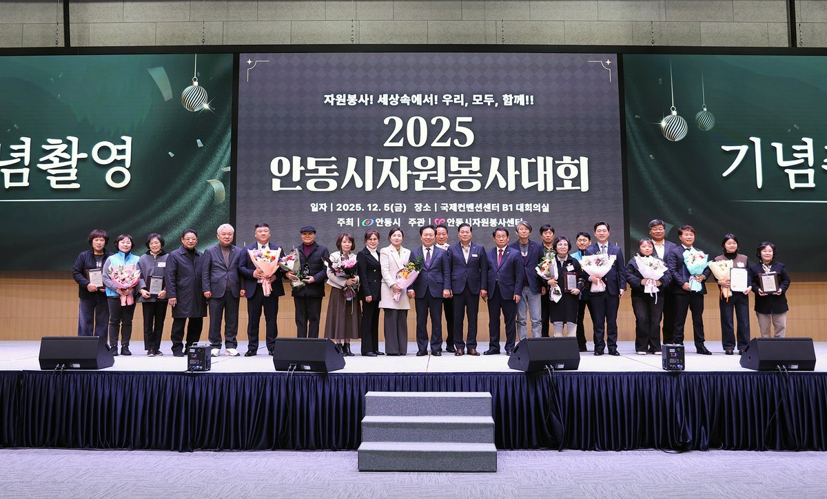 [금요저널] 안동시자원봉사센터는 5일 자원봉사자의 날을 맞아, 안동국제컨벤션센터 대회의실에서 헌신적인 나눔을 실천한 봉사자들을 격려하고 한 해 자원봉사활동을 마무리하는 ‘2025 안동시자원봉사대회’를 성황리에 개최했다.