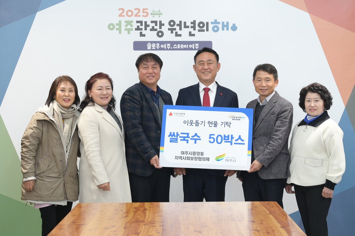 [금요저널] 지난 5일 여주시 중앙동지역사회보장협의체는 여주시청을 방문하여 여주시 저소득층을 돕기 위한 후원품으로 100만원 상당의 쌀국수, 50박스를 기탁하였다.